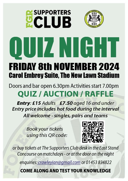 FGR Supporters Club Quiz Night - Friday 8 November 2024 Carole Embrey Suite, The New Lawn Stadium Friday 8th Nove [...]